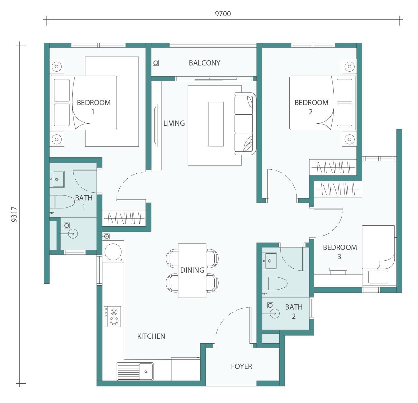 3 Bilik Tidur dan 2 Bilik Air (800 kps)